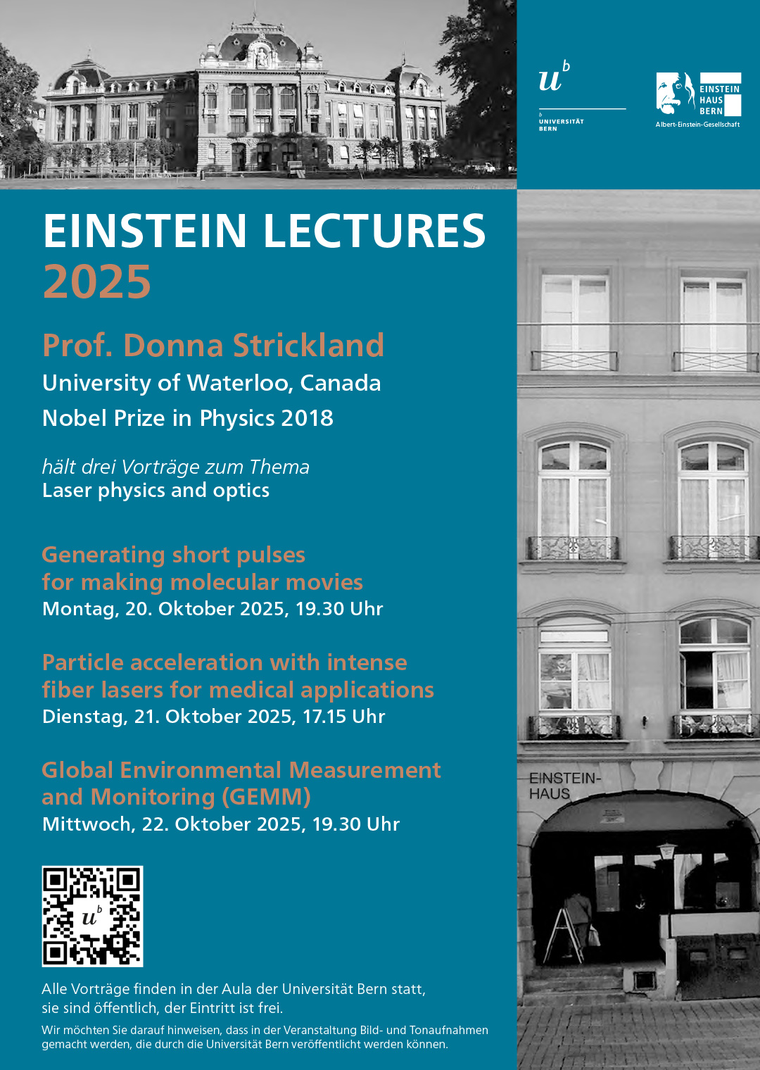 The ceremony will take place during the Physics Colloquium at the University of Bern.